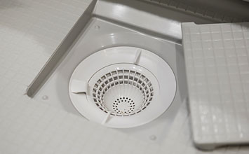 ワンプッシュで浴槽の排水口の開閉ができる排水栓。チェーンがないため掃除もしやすく、使い勝手に配慮しました。