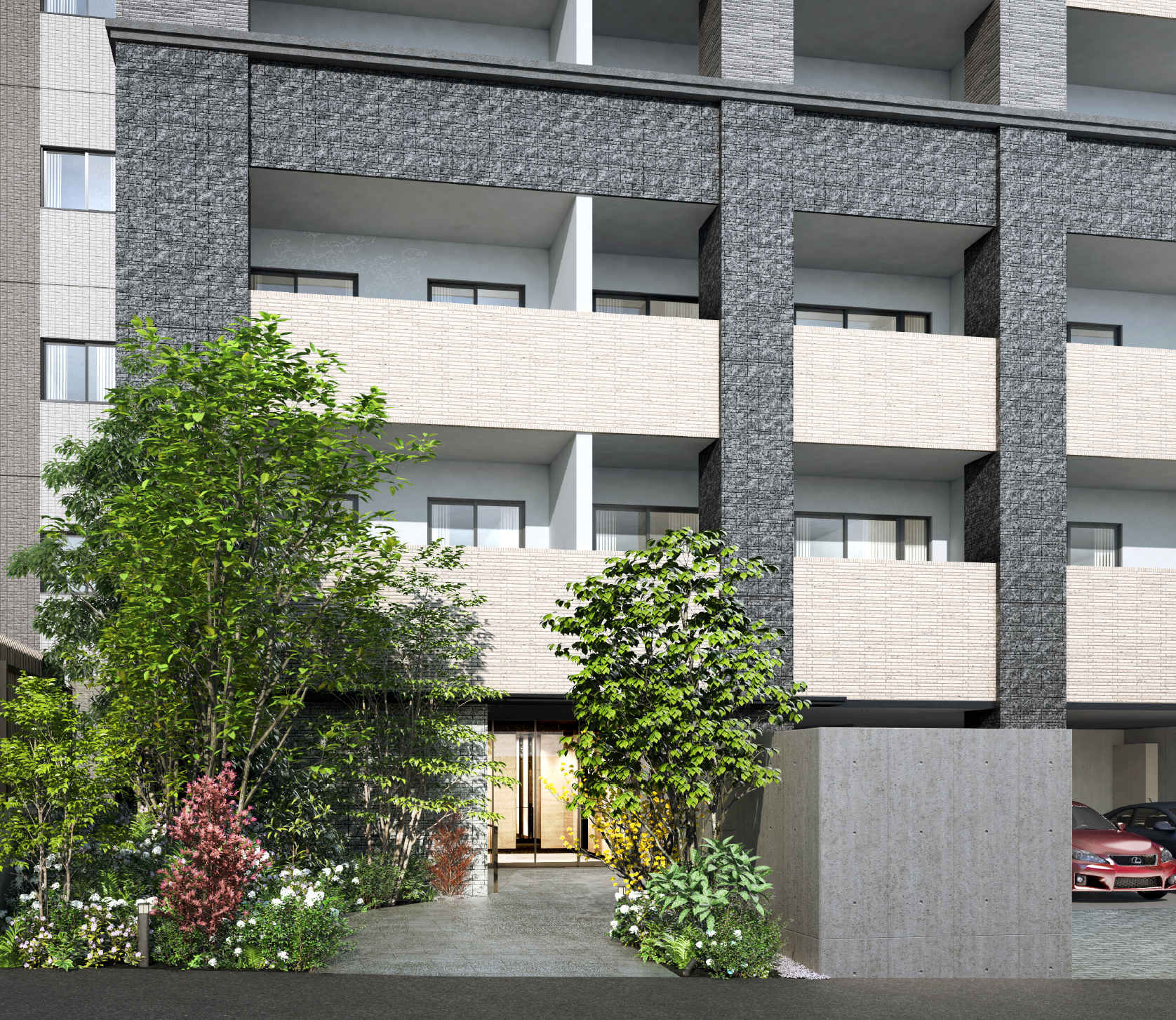※掲載の外観エントランス完成予想CGは計画段階の図面を基に描き起こしたものであり、実際とは異なります。形状の細部、設備機器、配管等は省略または簡略化の上、